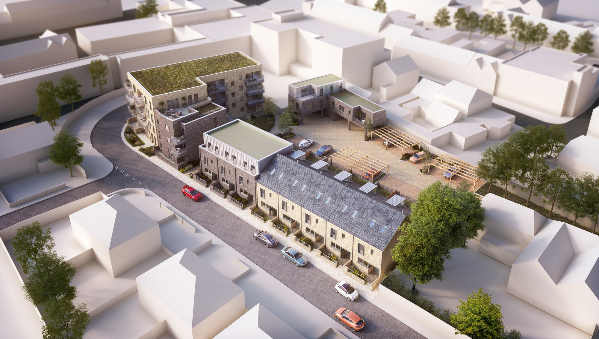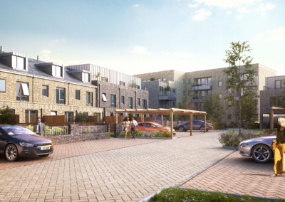 The previously developed site provides 28 new homes, including 19no. 2 bedroom flats, 1no. 3 bedroom flat and 8no. 3 bedroom houses. As well as residential accommodation, the site provides 28no. vehicle spaces, amenity space and landscaping.