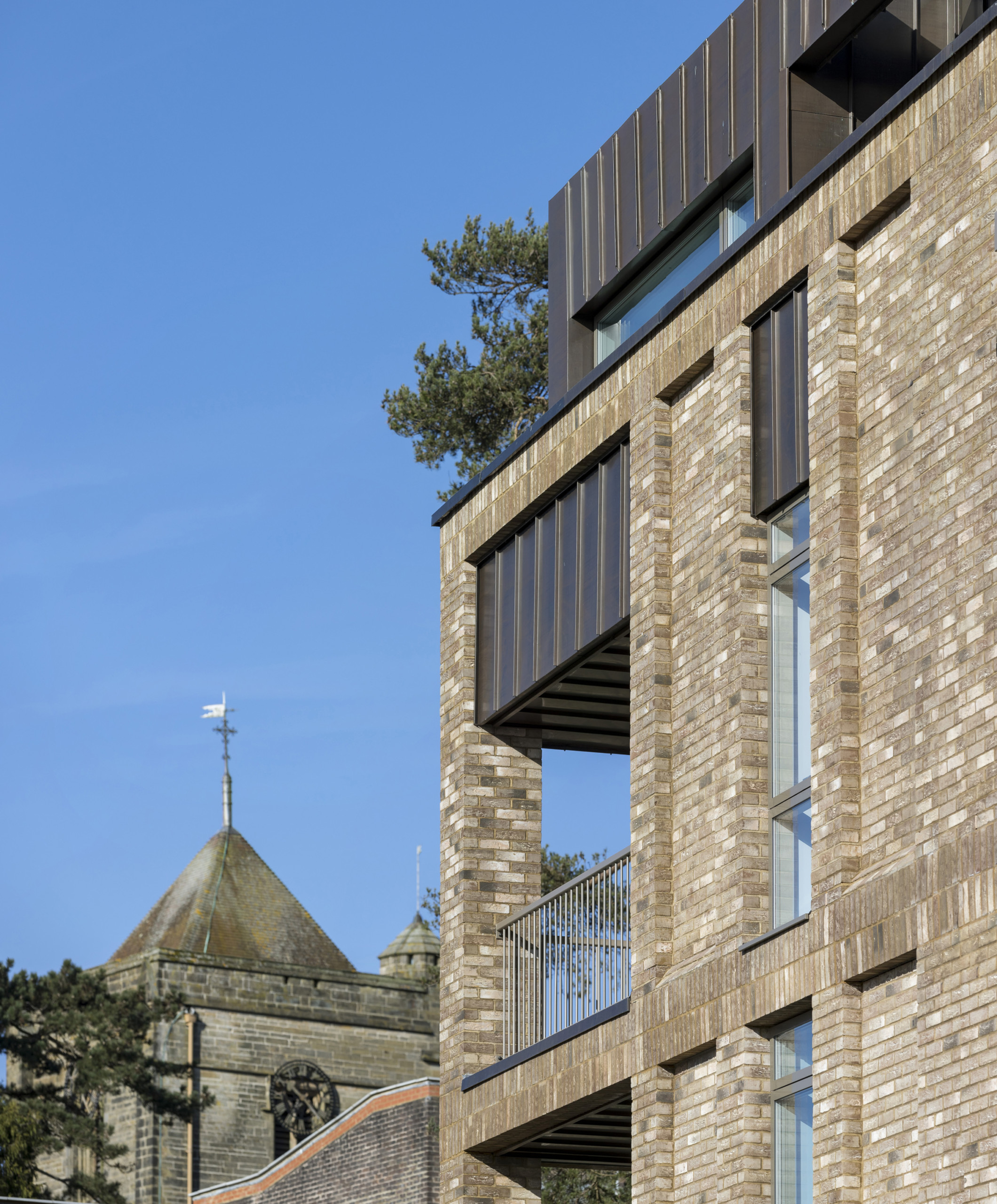 The scheme complements the surrounding context through the use of carefully chosen materials, ensuring that the colours, textures and tones are harmonious with neighbouring properties. The high quality architectural design includes the regular pattern of brickwork panelling and full height windows.