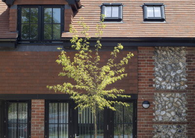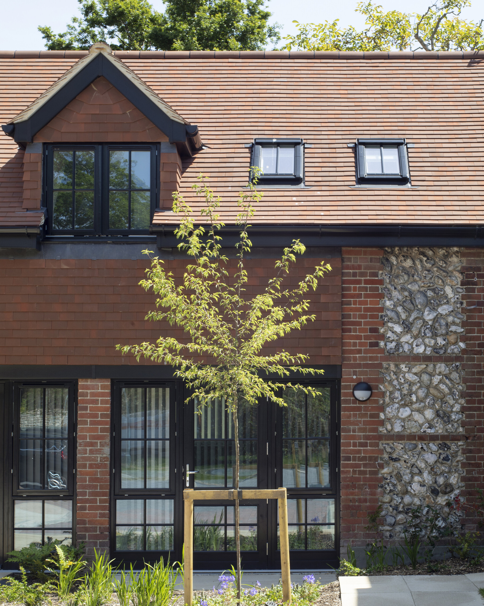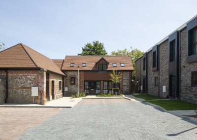 The development comprises 3no. 1-bedroom flats, 9no. 2-bedroom houses and 2no. 3-bedroom houses and takes architectural references from the surrounding Conservation Area, featuring locally prevalent design details including double-pitched roofs and bay windows. Traditional materials with contemporary detailing were utilised throughout the new buildings. The development also retained a disused Victorian stable block that was refurbished as part of the development.