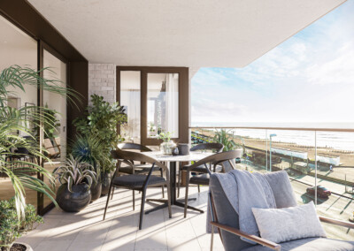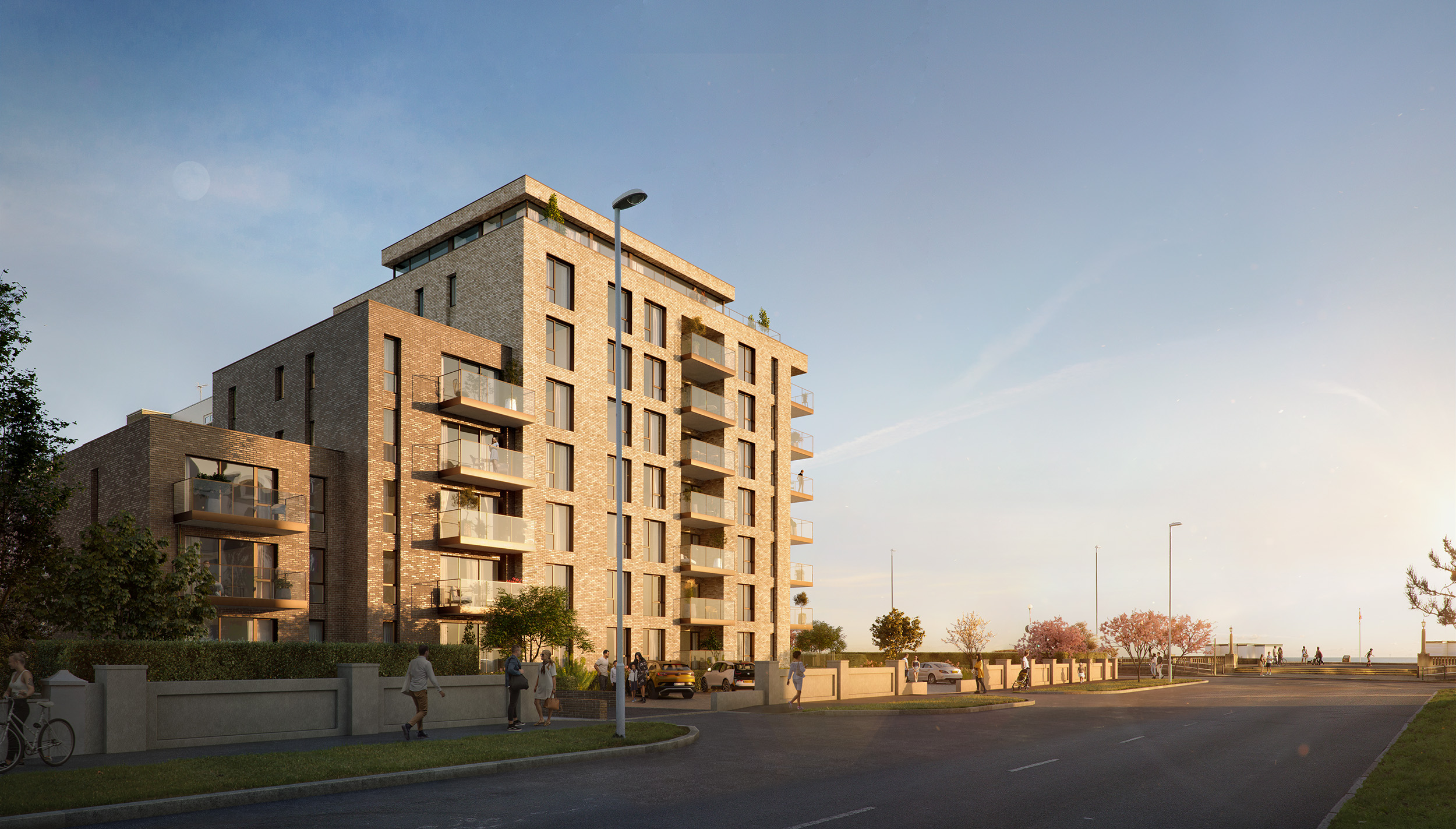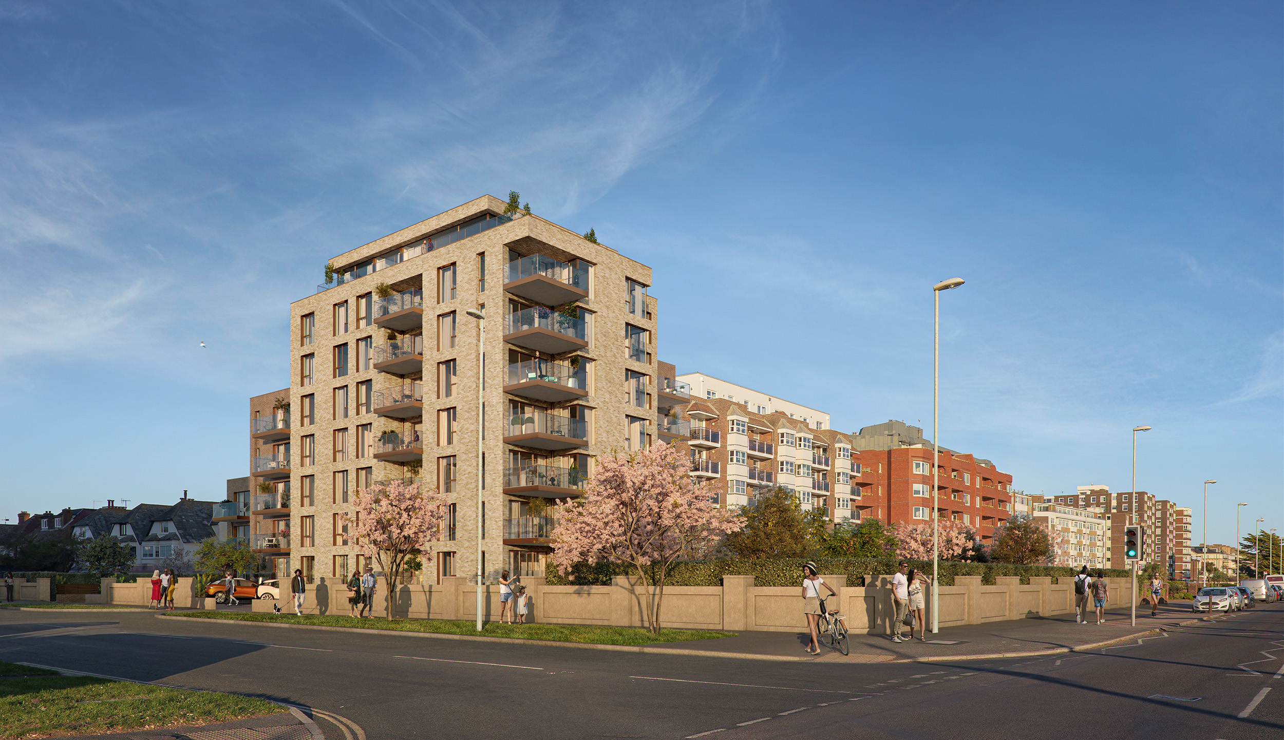 The scheme creates 29 residential units consisting 16 two bedroom and 13 three bedroom apartments, each with sea views afforded by either balcony or external private terrace. The majority of the car parking will be accommodated underground to allow a landscaped communal garden to occupy the West Parade frontage.