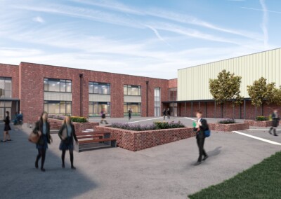 The agreed application comprises; Demolition of a single storey building and erection of a new two storey Teaching Block, Sports Hall and Changing Facilities and a further single storey extension to create new Music Practise Rooms. The development will also encompass internal and external refurbishments and minor works to existing buildings, landscaping and associated new parking spaces.