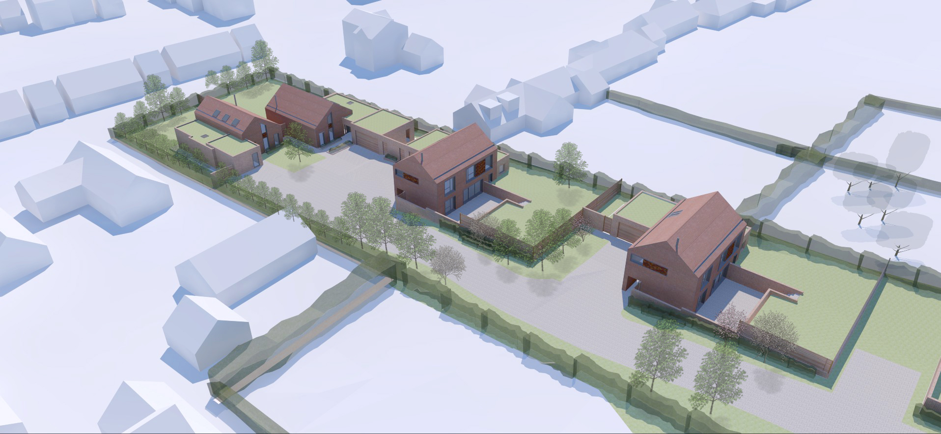 The proposals included the demolition of the existing garage and extensions to the existing property and also incorporated 4 new residential dwellings located to the rear of the existing property; the new builds included 2no. 4-bedroom houses and 2no. 3-bedroom houses.
